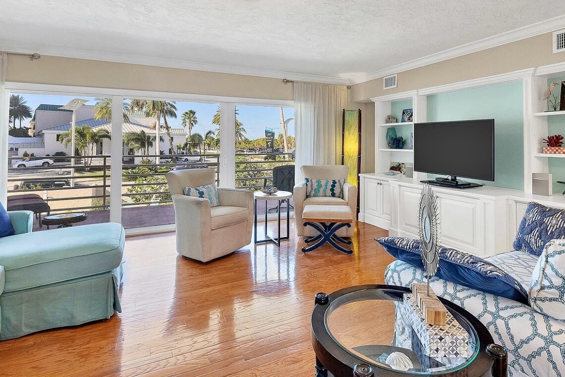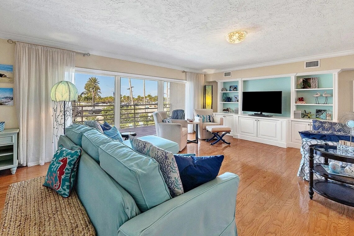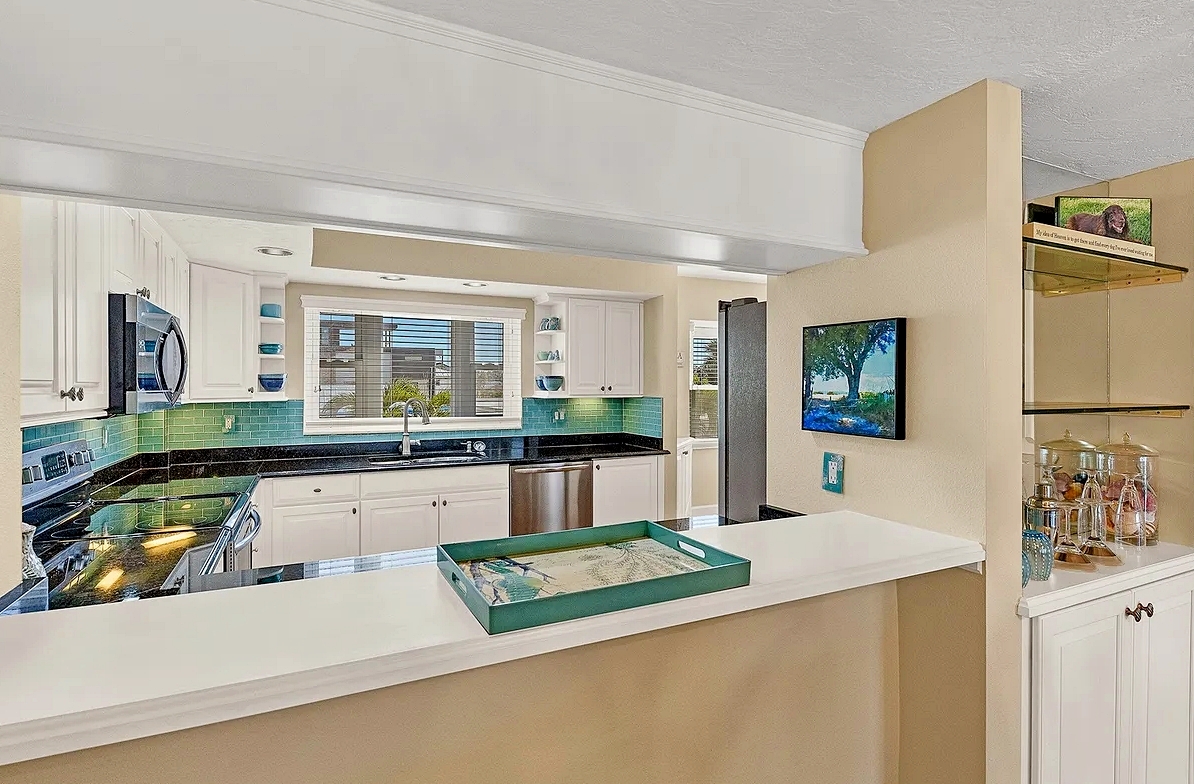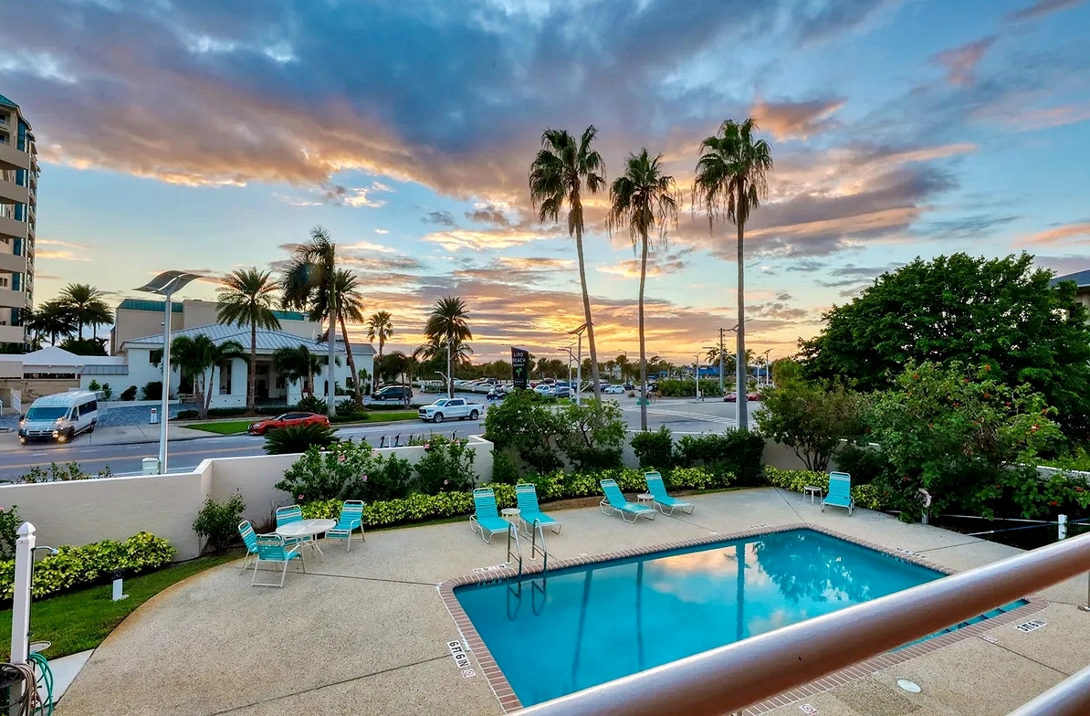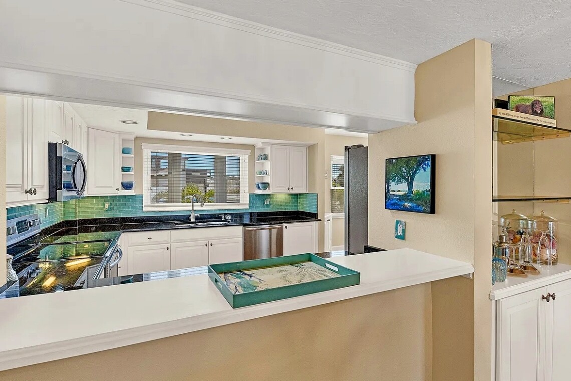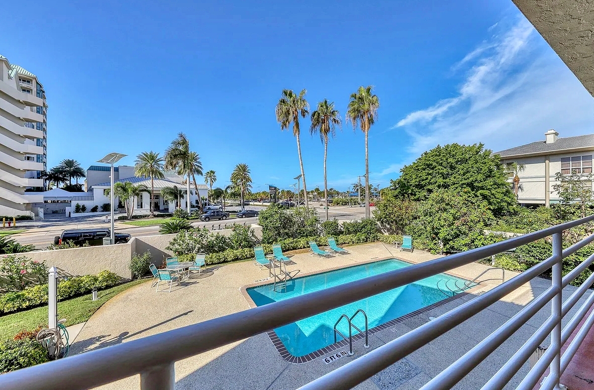 Enjoy the perfect Sarasota getaway in this spacious 3-bedroom, 2.5-bath coastal retreat, offering a bright open layout, stylish finishes, and multiple private balconies with relaxing pool and water views. The home features a fully equipped kitchen with stone countertops, comfortable living and dining areas, and well-separated bedrooms for added privacy—ideal for families or longer stays. Guests can unwind at the heated community pool, enjoy the convenience of attached garage parking, and take advantage of impact windows and modern comforts throughout. Located just steps from the beach, scenic waterfront paths, and close to dining, shopping, and local attractions, this property delivers comfort, space, and an unbeatable island-style location for your vacation.