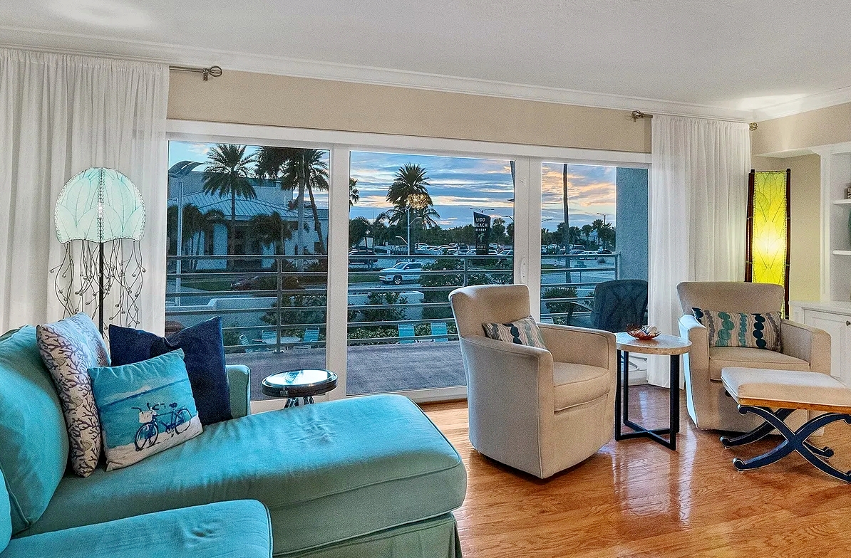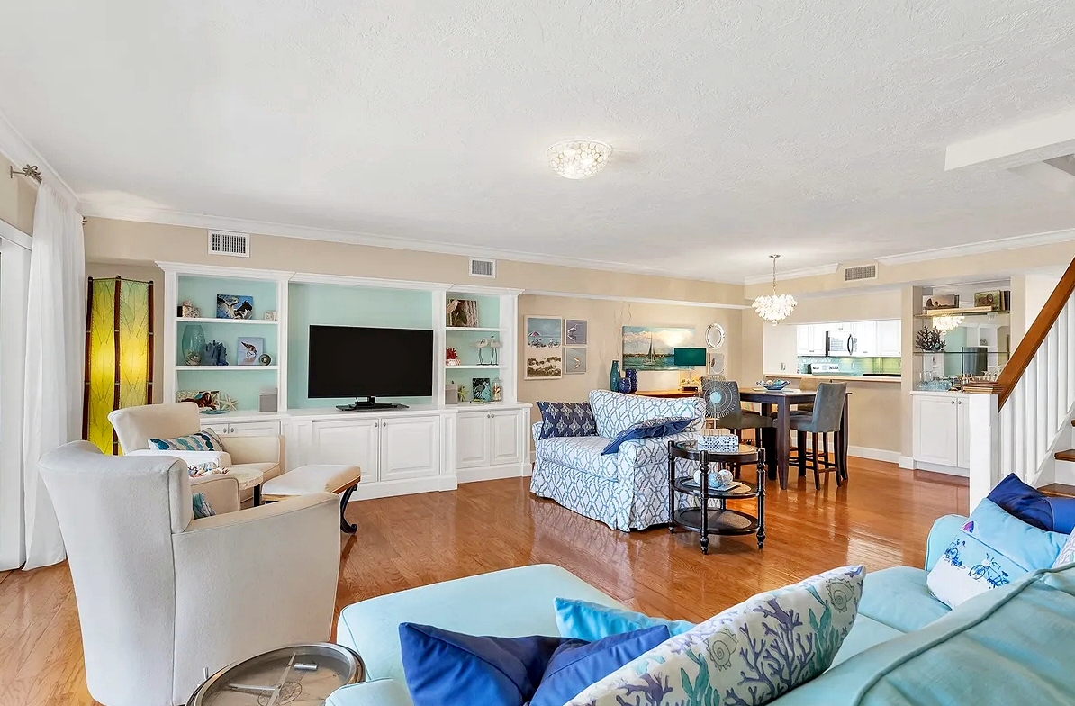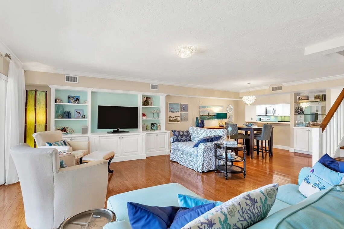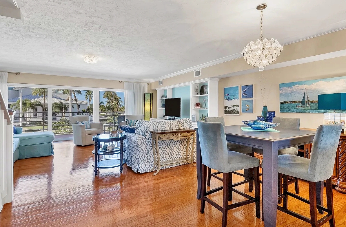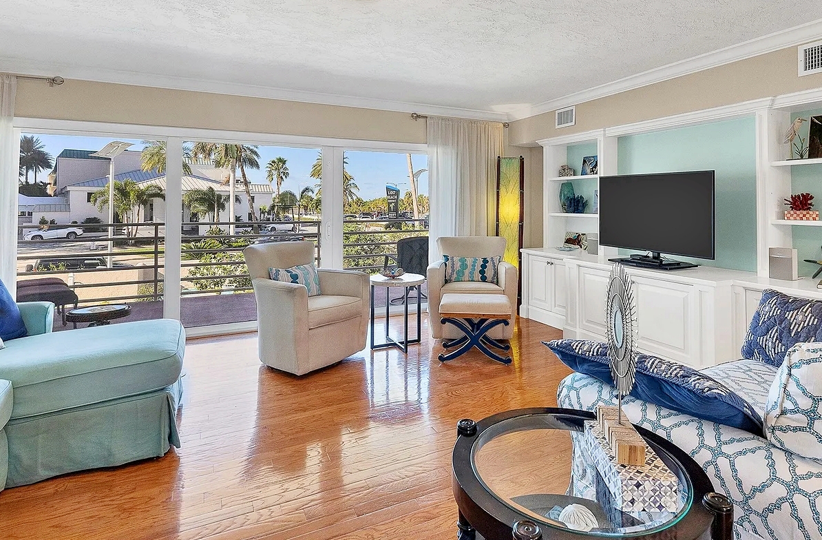 Enjoy the perfect Sarasota getaway in this spacious 3-bedroom, 2.5-bath coastal retreat, offering a bright open layout, stylish finishes, and multiple private balconies with relaxing pool and water views. The home features a fully equipped kitchen with stone countertops, comfortable living and dining areas, and well-separated bedrooms for added privacy—ideal for families or longer stays. Guests can unwind at the heated community pool, enjoy the convenience of attached garage parking, and take advantage of impact windows and modern comforts throughout. Located just steps from the beach, scenic waterfront paths, and close to dining, shopping, and local attractions, this property delivers comfort, space, and an unbeatable island-style location for your vacation.