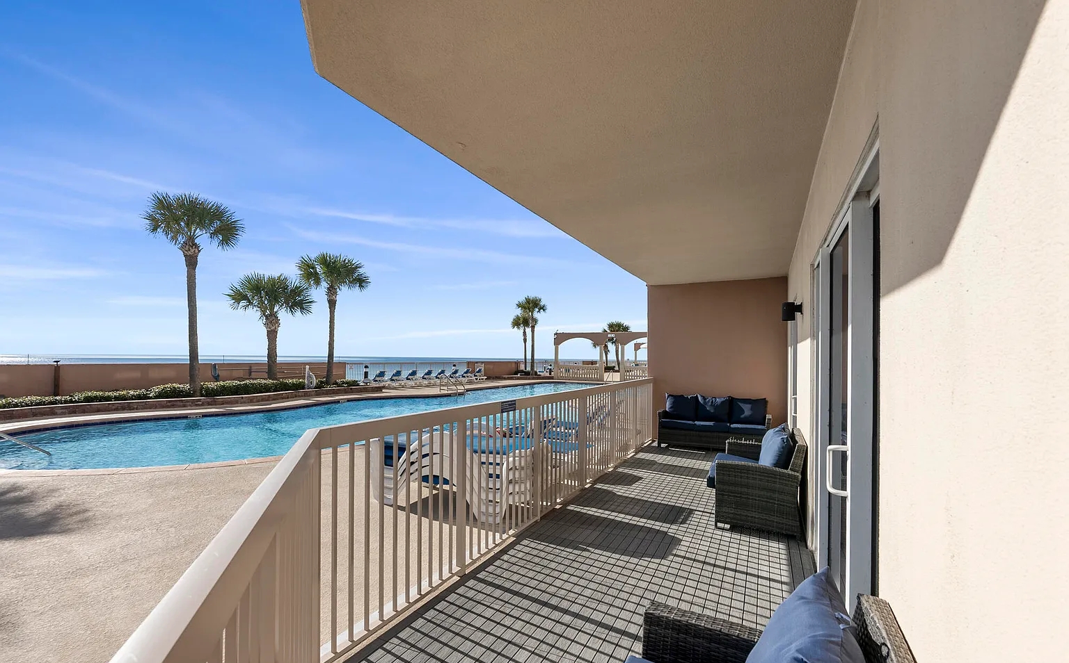 This elegant three-bedroom beachfront apartment invites you to experience coastal luxury with breathtaking panoramic views of the Gulf of Mexico. The beautifully furnished open-concept living area features a modern, fully equipped kitchen and a spacious private balcony perfect for enjoying the soothing sounds of the waves. Guests can relax by the sparkling pool, take advantage of direct beach access, and explore nearby restaurants, boutique shops, and entertainment venues. Ideal for families or couples seeking a serene, stylish, and comfortable beachside escape in the heart of Panama City Beach.