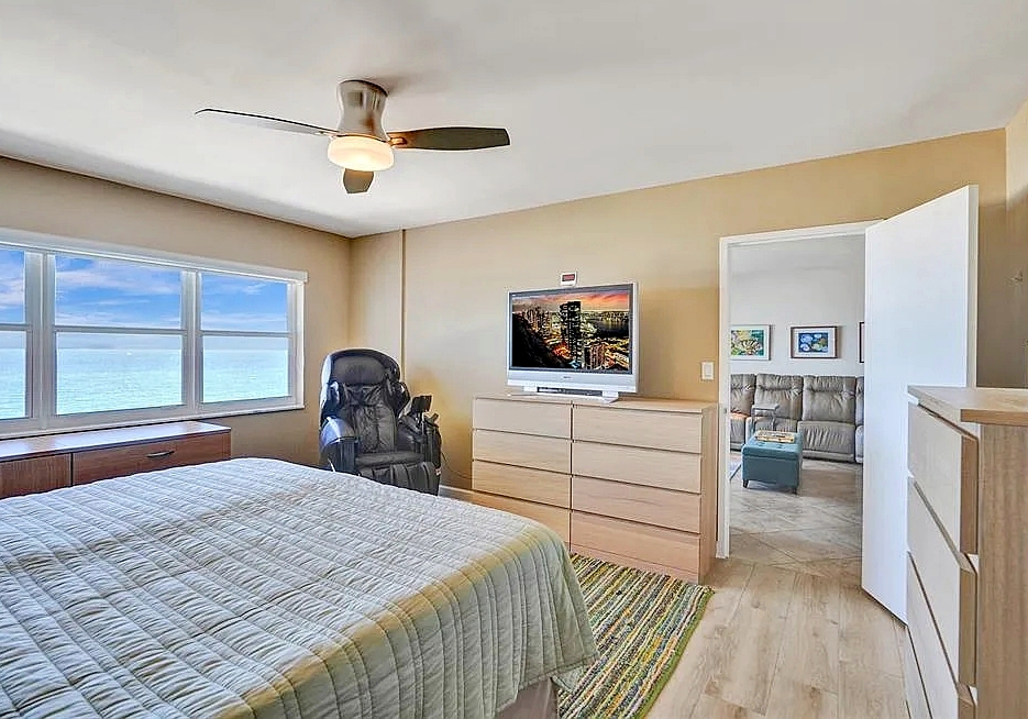 Enjoy spectacular ocean, pier, and Intracoastal views from this fully updated 2-bedroom, 2-bath vacation condo in Pompano Beach. Featuring an open kitchen with stainless appliances, granite counters, porcelain floors, and impact windows, this bright and airy unit also offers a full-size washer/dryer, garage parking, and extra storage. Relax with resort-style amenities including a pool, community/game room, library, and 24-hour security. Steps from restaurants, shopping, and the Pompano Pier, with golf, tennis, and pickleball just minutes away—perfect for a beachfront getaway!