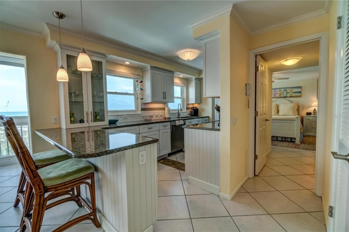 Elegant two-bedroom waterfront condominium offering refined coastal living with beautiful views and a thoughtfully designed interior. The residence features a bright living area, modern kitchen with stainless steel appliances and granite countertops, and two well-appointed bedrooms designed for comfort and privacy. The primary suite includes expansive water views and a private ensuite bathroom, while the second full bathroom adds convenience for guests or families. Residents enjoy access to resort-style amenities including a heated pool, social lounge, and secure covered parking. Ideally located near beaches, waterfront attractions, dining, and the island’s charming downtown area, this property offers an exceptional short-term stay in a relaxed coastal setting.